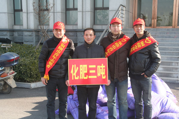 12月27日上午,在銅陵市2014年文化、科技、衛生“三下鄉”暨第六屆“鄉村青年文化節”活動啟動儀式上,銅化集團青年志愿者為銅陵縣西湖鎮群眾贈送“z6mg人生就是博”牌復合肥和“九華山”牌過磷酸鈣共計三噸。贈送化肥已成為此項活動的重頭戲。圖為活動現場。