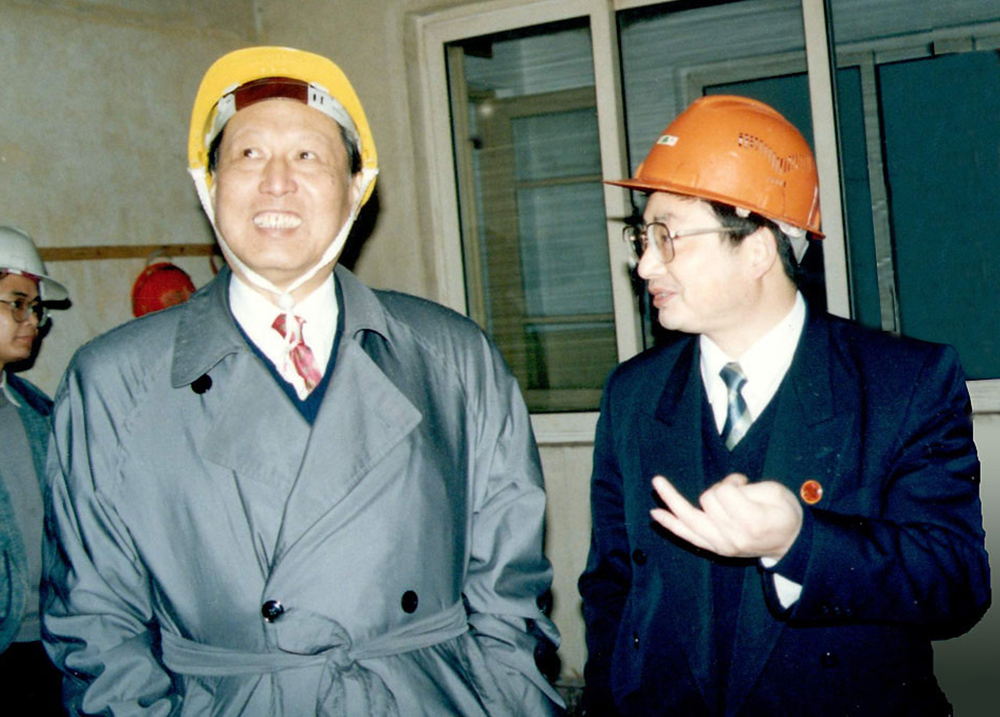 1997年4月3日,第九、十屆全國人大常委會副委員長、化工部副部長成思危(左一)蒞臨公司視察。