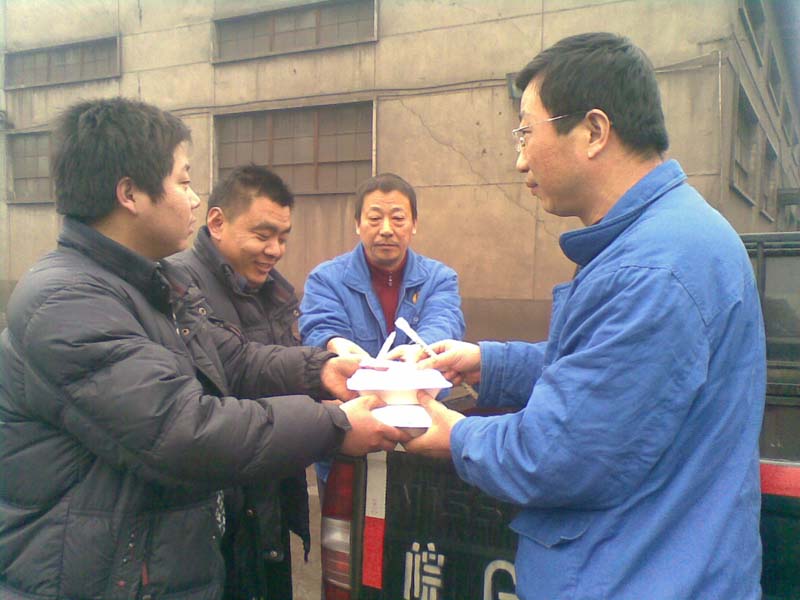 圖一:停電期間,近三十輛外地液氨槽罐車(chē),?吭詮耷導(dǎo)浼巴勐分付ǖ氐,等待公司供電恢復(fù)后按序卸氨。供應(yīng)二公司采購(gòu)業(yè)務(wù)員于20日中午、傍晚,為液氨槽罐車(chē)司機(jī)和押運(yùn)員們送去了熱飯菜和礦泉水。