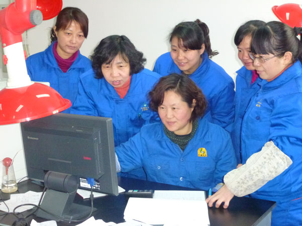 圖一:色譜分析儀作為精確的氣體分析設備,熟練掌握不是件容易的事。在技能大師丁紅鎖的帶領下,她們苦練基本功,圖為她們在對氣體分析數據做最后的確認。