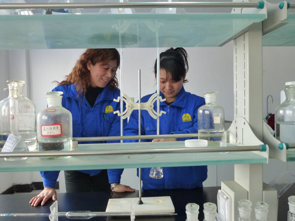 圖二:用心做好分析,工作一絲不茍是她們對工作的最基本要求。圖為她們在做水質分析。