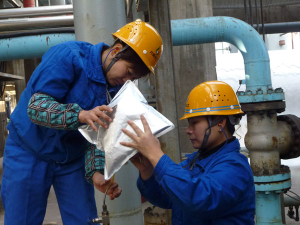 大合成氨質計部分析室是由22位女同志組成的集體,平均年齡41.7歲,她們當中大合成氨雙職工參與開車倒班的有5人,丈夫常年駐點在外做銷售的5人,家中有孩子參加今年高考的2人,參加今年中考的1人。但她們舍小家顧“大家”,在大合成氨項目試車過程中,她們24小時堅守崗位,及時精確地為大合成氨項目試生產提供氣體、水質等多種分析數據,為工序接轉和工藝流程的順利打通提供了可靠的分析數據。據統計,從12月至今,她們共出現場取樣近3900人次,現場采樣近2000份。共出具檢測報告1722份,另做動火分析155次。