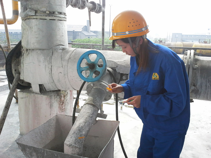 圖三:崗位人員在出料口查看磷酸一銨成品